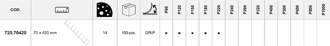 Foglio abrasivo 14 fori | 70 x 420 mm che garantisce alte prestazioni grazie alla sua elevata qualità.