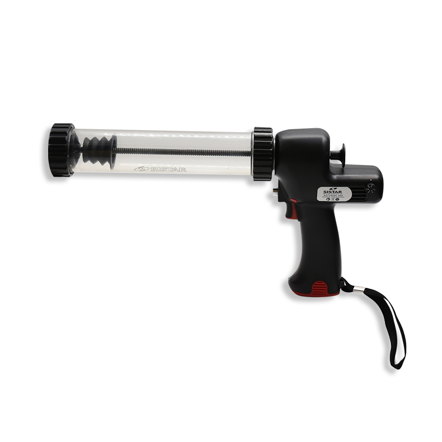Pistola professionale Cordless a batteria per l’estrusione di sigillanti monocomponenti a media-alta viscosità in cartuccia da 290/310 ml e sacchetti da 400 ml e 600 ml. Batteria: ricaricabile agli ioni di litio (Li-ion) 7,4V – 1,3A. Forza di spinta: 300 Kgf. Sistema per evitare il gocciolamento del prodotto a fine erogazione. Regolatore della velocità per un migliore controllo di erogazione (Velocità 6,9 mm/sec). Leva di sicurezza per impedire l’attivazione accidentale della pistola. Luce a LED sull’impugnatura per lavorare in zone di scarsa illuminazione. Peso: 1,250/1,400 Kg. Valigetta in plastica completa di caricabatteria.