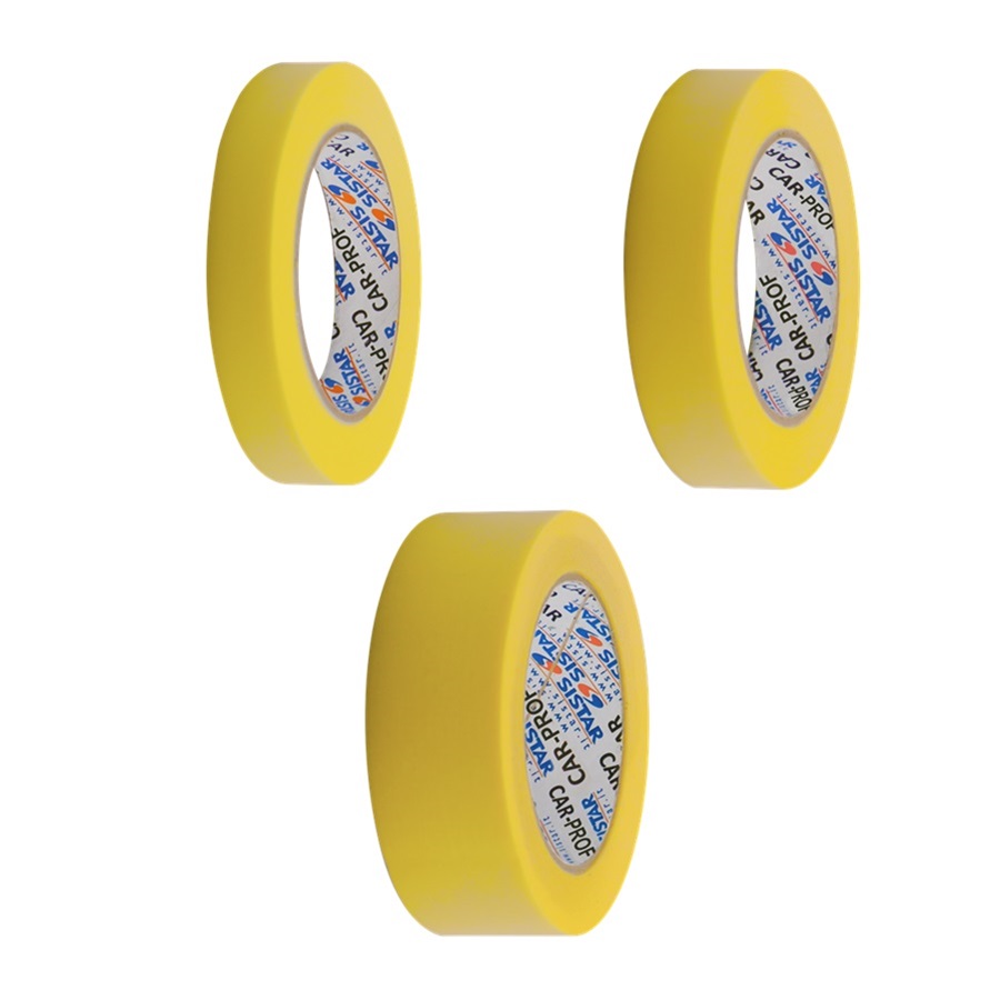 Nastro adesivo per mascheratura idrorepellente di colore giallo brillante, ottima resistenza alla temperatura ed ai raggi UV.