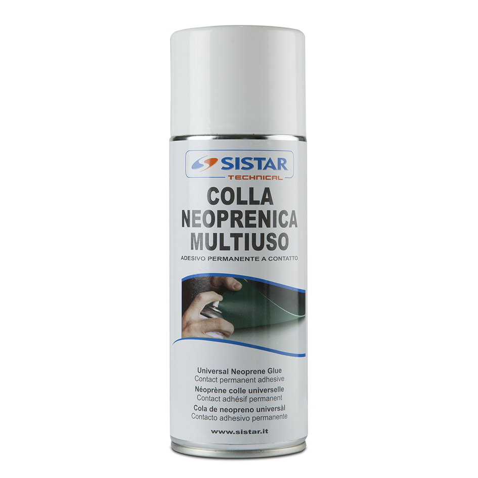 Adesivo neoprenico permanente a contatto, molto tenace, particolarmente indicato per incollare gomma, materiali vinilici e sintetici, plastiche in genere, tessuto, feltri, pelle, cuoio, legno, carta, cartone, laminati, vetro, ceramica, metallo. Spruzzare una quantità adeguata su entrambe le superfici da incollare, attendere l’evaporazione del solvente, quindi unire le parti esercitando una forte pressione.