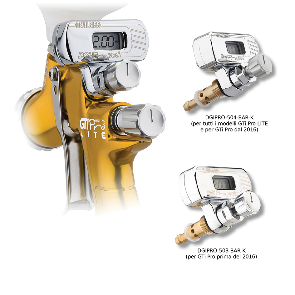 ► Il manometro DGI Pro Pod è indicato per l’uso con prodotti vernicianti a base acqua e a base solvente.