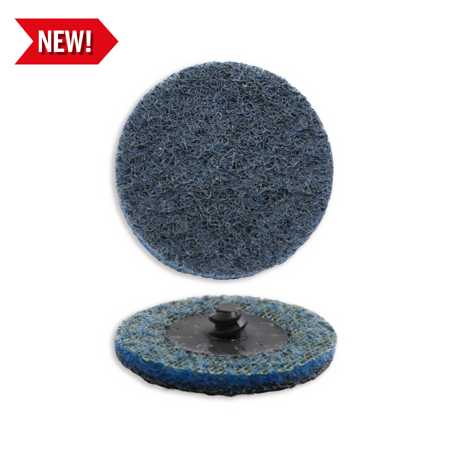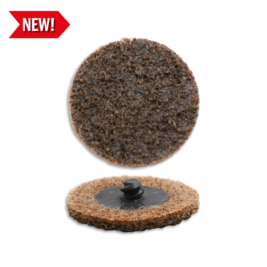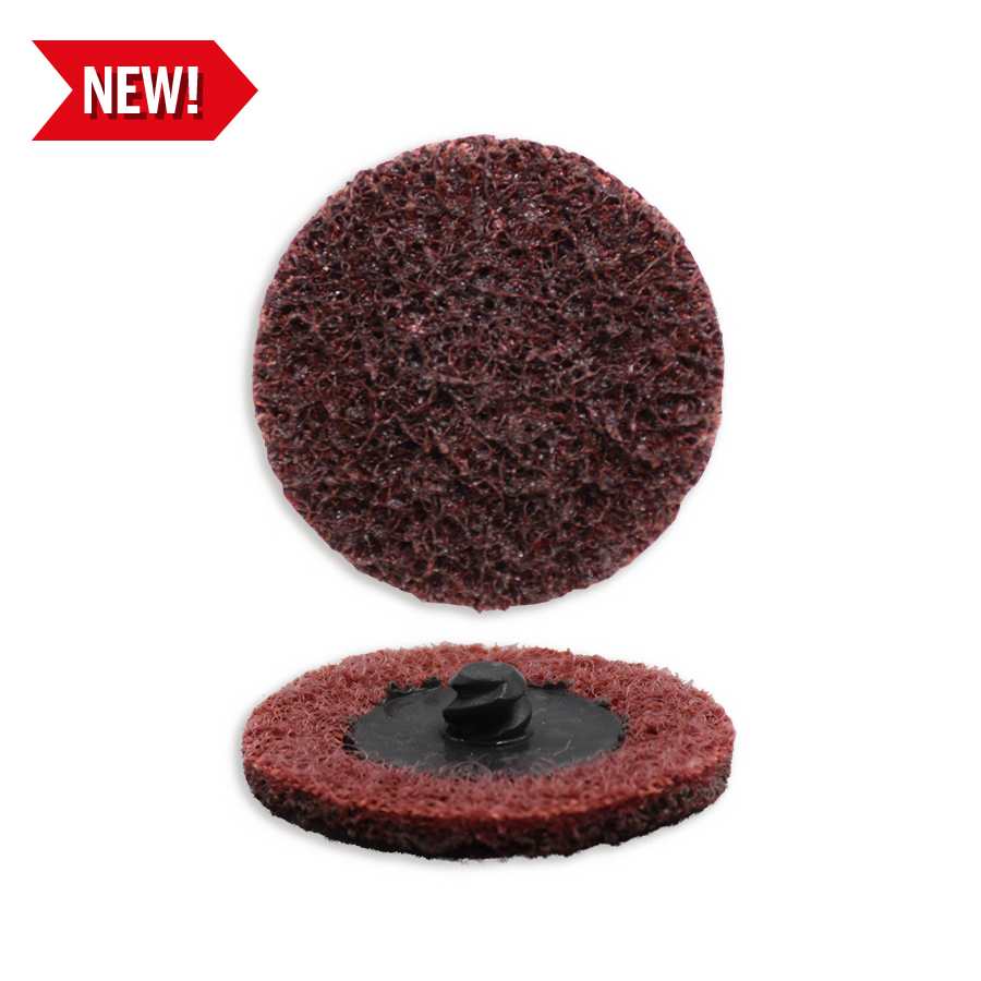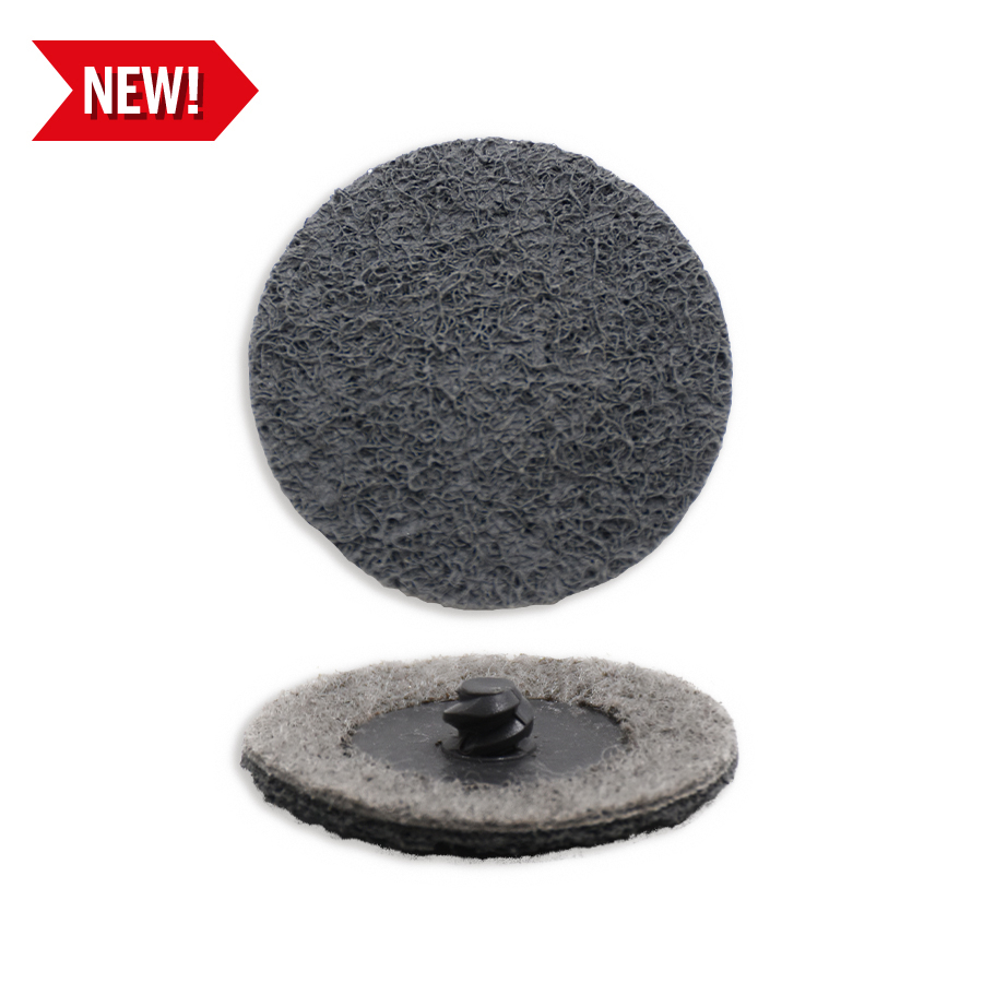 Dischi abrasivi in Surface Conditioning con attacco a cambio rapido tipo R, in tessuto-non-tessuto di nylon impegnato di granuli abrasivi. Il disco è ancorato ad un perno filettato maschio per permettere un rapido montaggio sull’apposito platorello. Si utilizza con levigatrici angolari per il decapaggio, satinatura e finitura di tutti i tipi di metalli.
