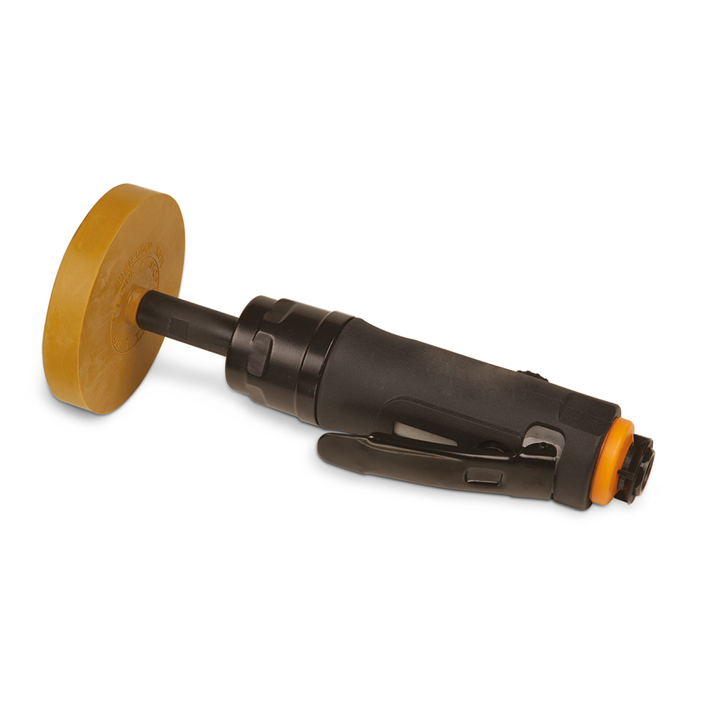 Utensile pneumatico progettato per eliminare qualsiasi adesivo o segni sulla carrozzeria con la ruota in gomma (codice 176.0500 inclusa nella confezione) senza danneggiare le superfici verniciate, il metallo, la plastica e il vetro. Con regolatore di velocità.