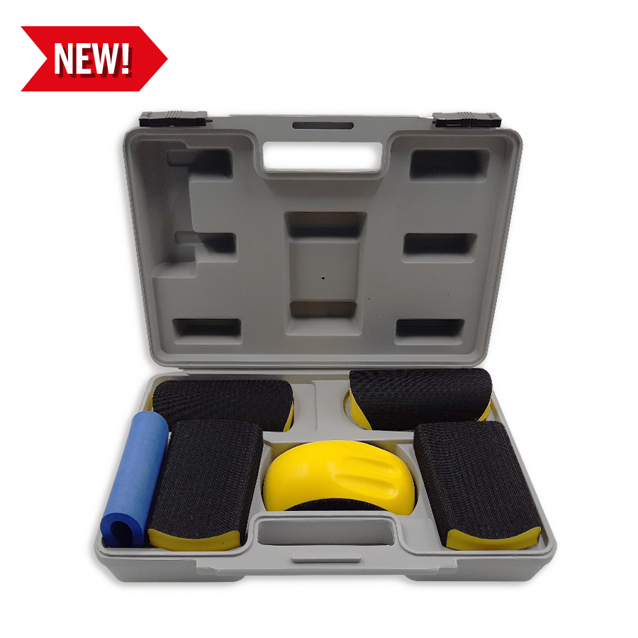 Kit composto da 6 tamponi per carteggiatura manuale, senza aspirazione, per dischi abrasivi Ø 150 mm. Indicati per superfici piane, concave e convesse e zone di difficile accesso.