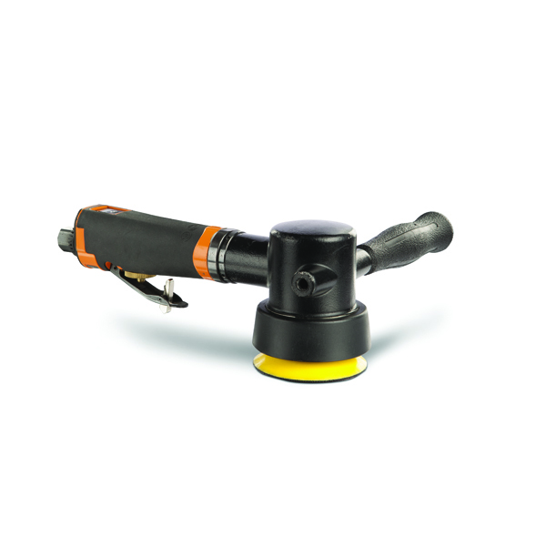 Lucidatrice pneumatica rotorbitale a due mani, molto potente (0,35 HP) e robusta. Orbita 14,0 mm.