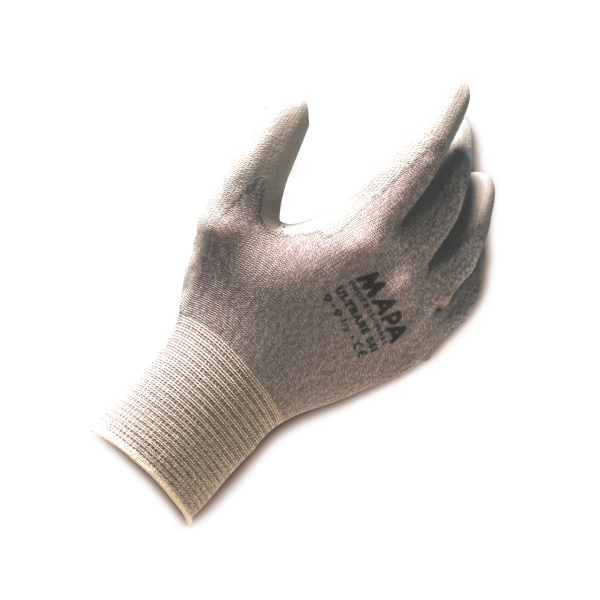Guanto in maglia di nylon, rivestito in poliuretano, colore grigio. Ottima resistenza all’abrasione, elevata destrezza. Adatto a lavori di manutenzione, anche di precisione.