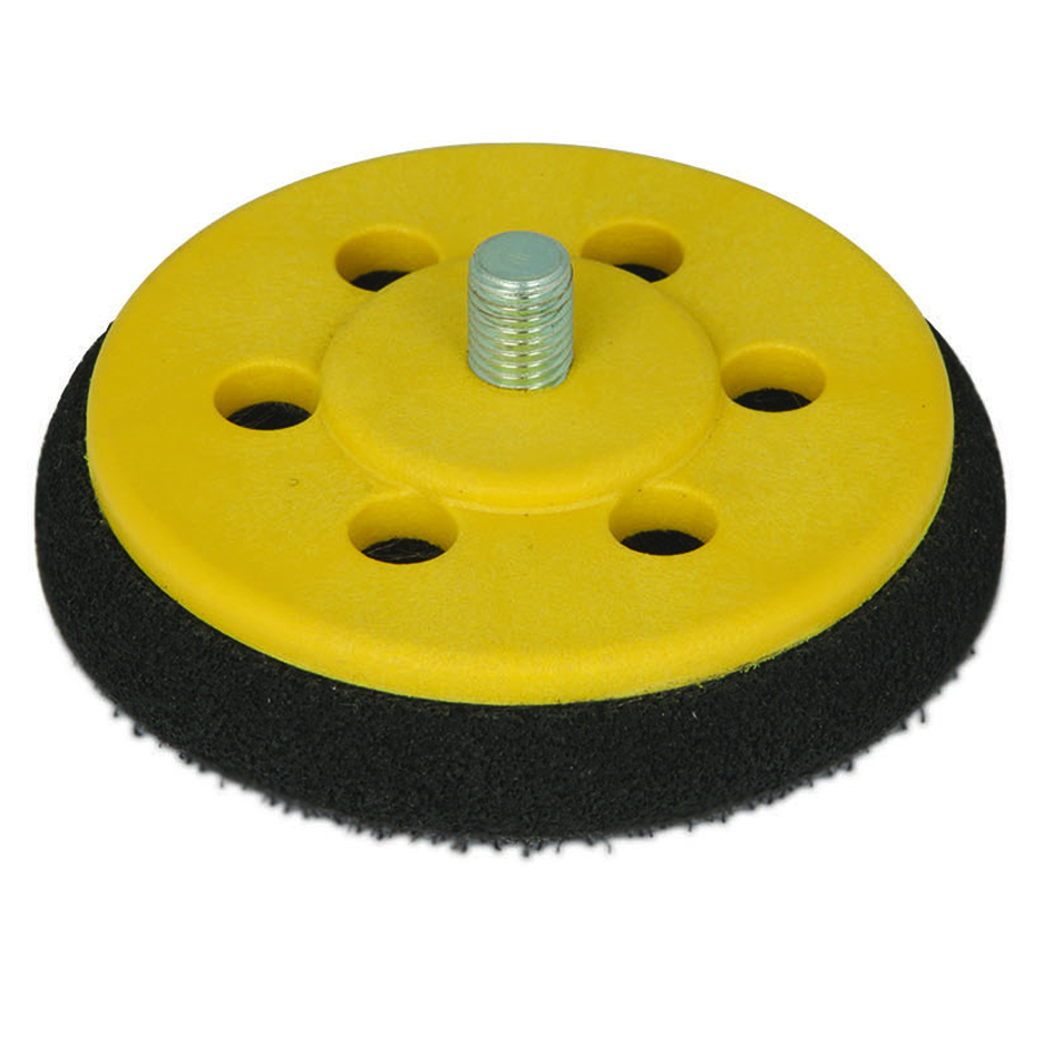 Mini-platorello per dischi abrasivi Ø 75-80 mm per la carteggiatura di aree limitate e nella eliminazione dei difetti di verniciatura. Si utilizza anche con la levigatrice palmare orbitale 471.0840/471.0842. Con 6 fori di aspirazione e attacco grip.