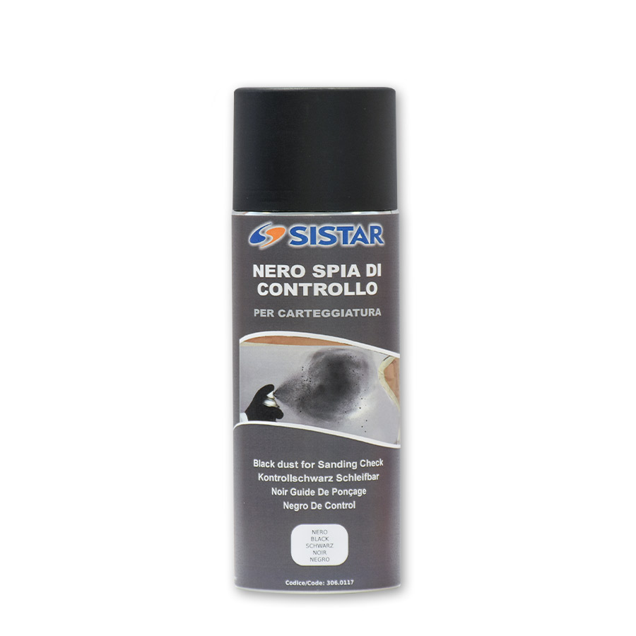 Spia spray nero di controllo per carteggiatura. Si applica uno strato leggero e omogeneo su stucchi e fondi prima della carteggiatura per far evidenziare le zone non carteggiate uniformemente. Compatibile con tutti i prodotti di preparazione e finitura. Esente da CFC. VOC: IIB/(e) (840)< 830 g/L.