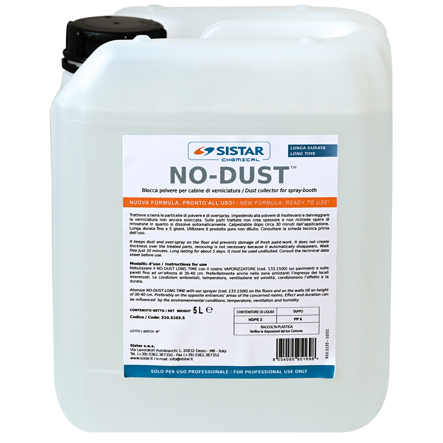 Bloccapolvere pronto all’uso da vaporizzare sul pavimento delle cabine di verniciatura e delle zone antistanti. Trattiene a terra le particelle di polvere e di overspray.