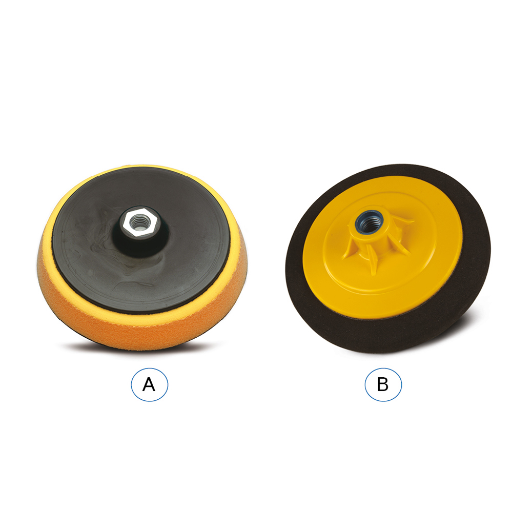 Platorello in resina con supporto in espanso, indicato per il montaggio dei dischi in pura lana e tamponi di lucidatura. Attacco velcro.