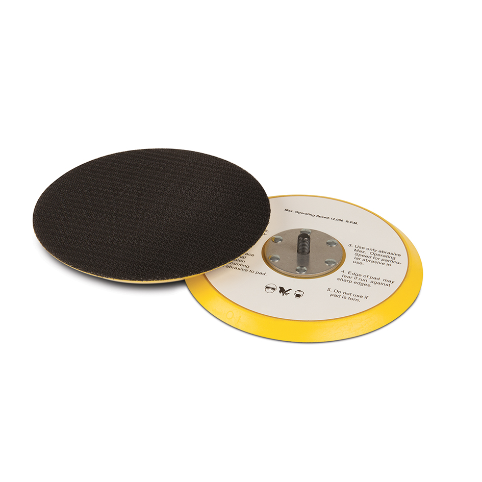 Platorello senza fori di aspirazione. Rinforzato centralmente per un uso prolungato e intensivo. Accetta tutti i dischi abrasivi senza fori o tamponi per lucidatura antialoni con levigatrici palmari rotorbitali. Attacco velcro.