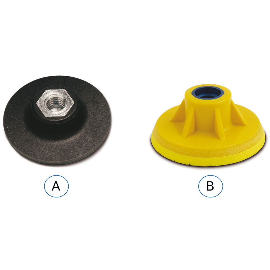Mini-platorello in resina, adatto per il montaggio dei mini-tamponi in spugna e dei mini-disco in lana. Attacco velcro.