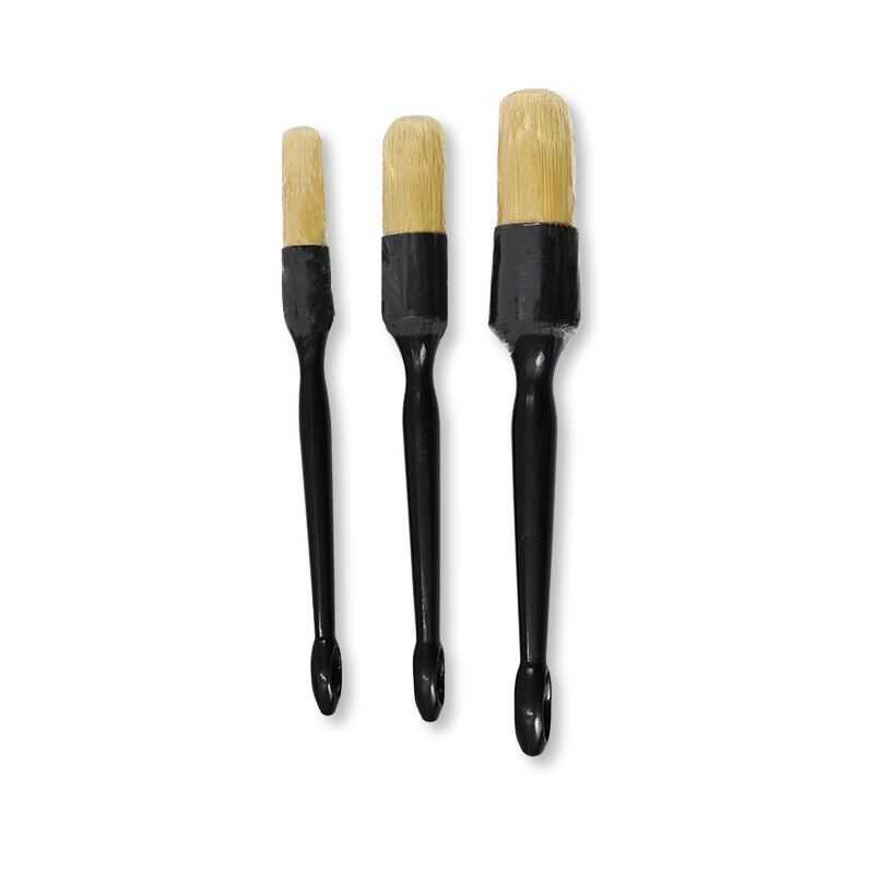 Set di 3 pennelli con manico in plastica e setole in polipropilene di media durezza per tutti i tipi di lavorazione interna ed esterna dei veicoli.