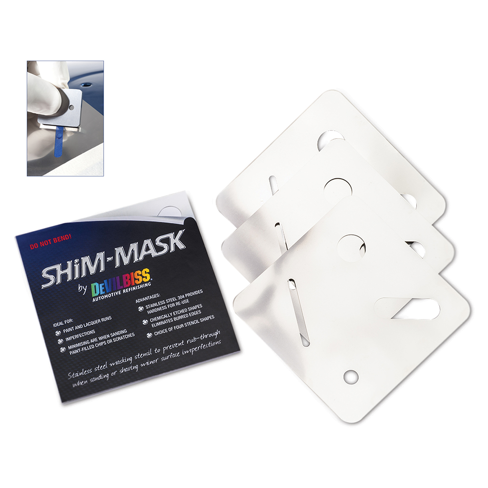 Stencil per mascheratura in acciaio inossidabile per evitare lesioni della superficie durante la carteggiatura o la rasatura delle piccole imperfezioni di vernice. Ideale per le imperfezioni della vernice, riducendo al minimo la zona da carteggiare. Vantaggi: l’acciaio inox 304 offre durezza per l’utilizzo, grazie alle forme incise nello stencil è possibile eliminare i bordi sbavati, scelta di quattro forme diverse. Confezione: Kit di 3 Shim-Mask.