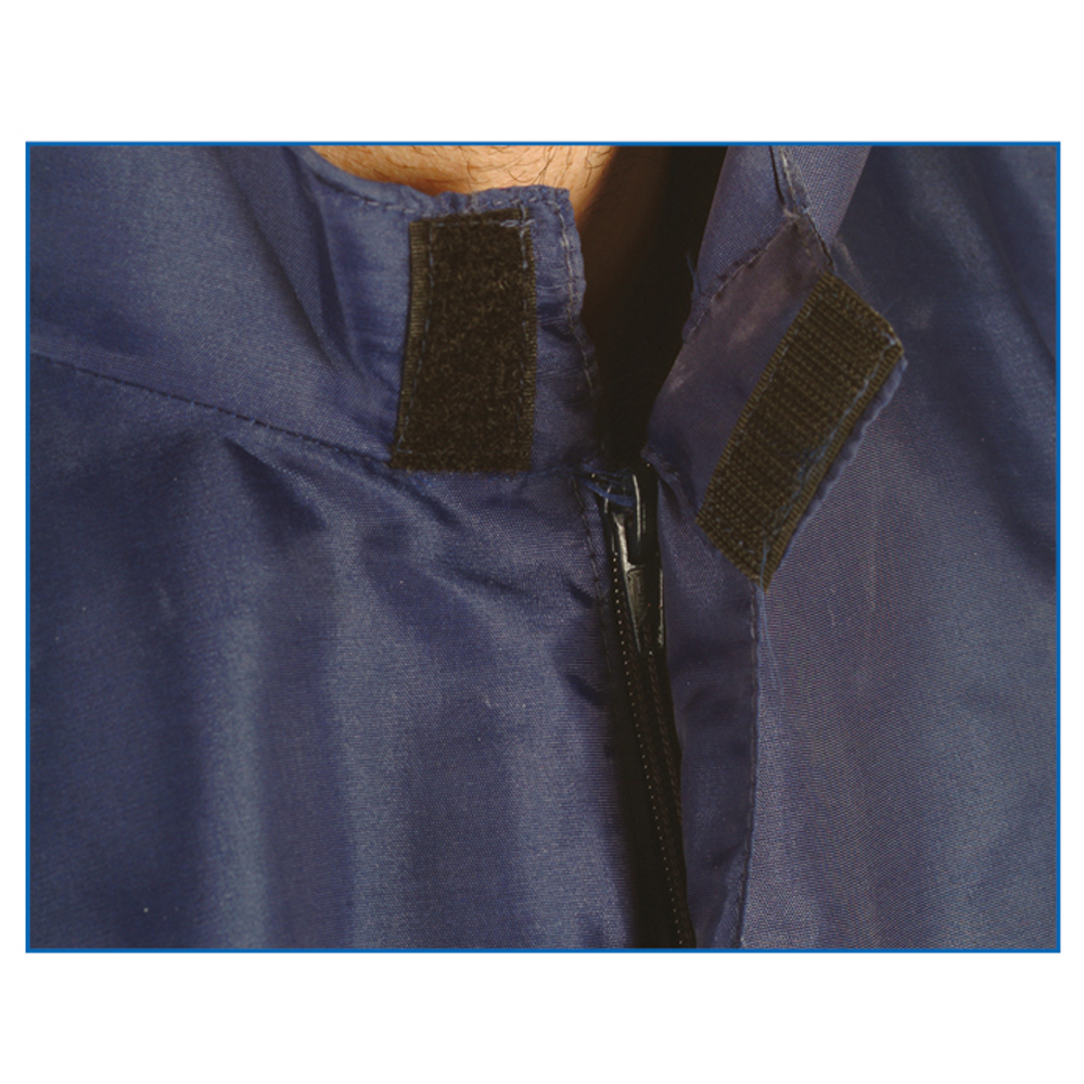 Tuta intera realizzata in 100% poliestere, estremamente confortevole e traspirante, non rilascia fibre ed è lavabile molte volte. Cappuccio con elastico e chiusura velcro. Cerniera a doppio cursore protetta. Elastico ai polsi, alle caviglie e sui fianchi. Taschino e tasca posteriore con chiusura velcro.