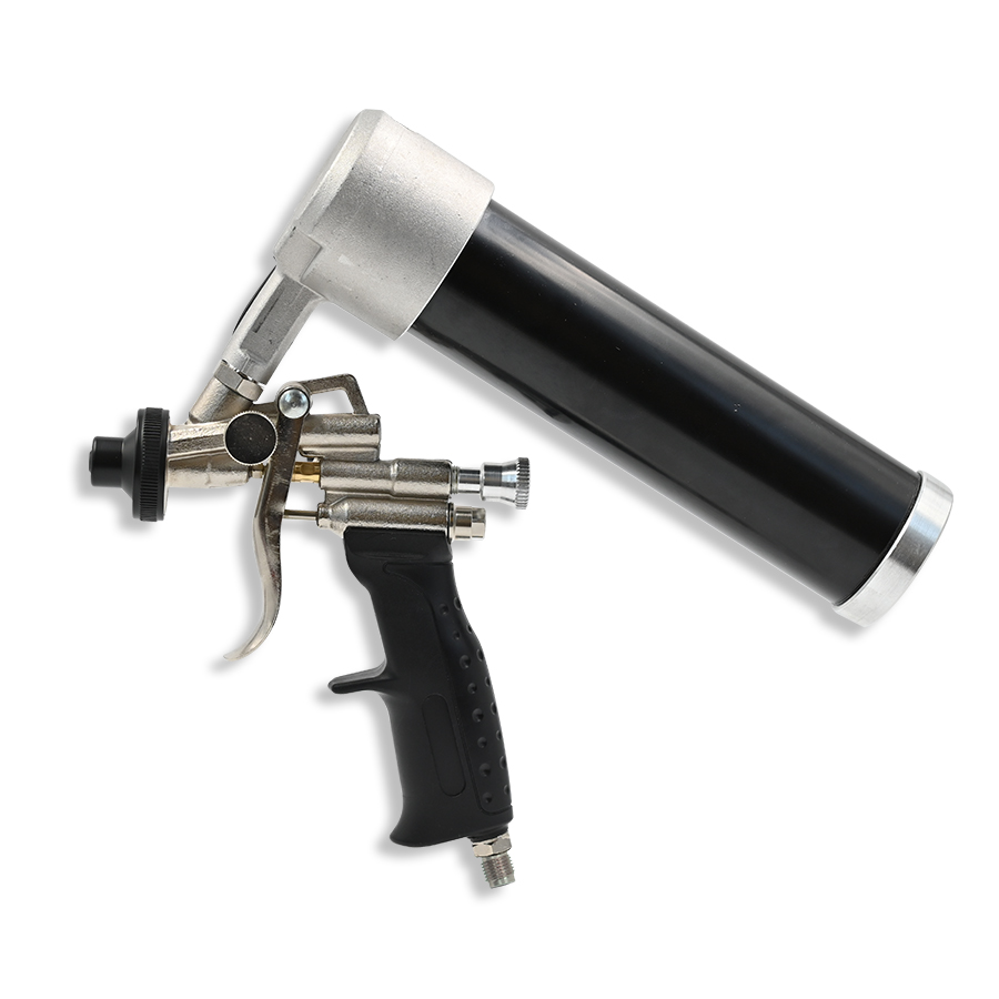 Pistola professionale pneumatica per la spruzzatura e l’estrusione di sigillanti monocomponenti spruzzabili (MS-Polymer tipo Spray-Simp) in cartuccia di plastica standard da 290/310 ml.