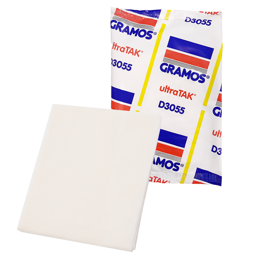 Tessuto-non-tessuto semi-adesivo bianco antipolvere a basso contenuto di resina. Speciale per vernici a base acqua. Confezionato in busta singola.