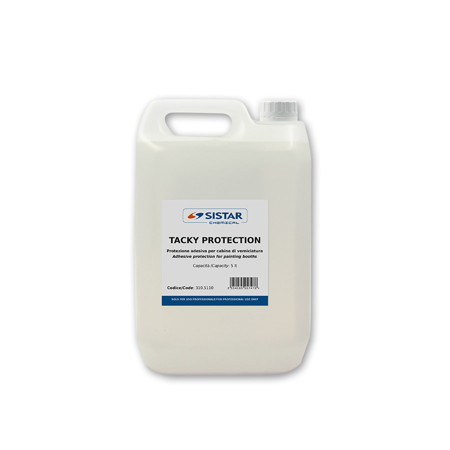 Liquido adesivo appiccicoso per proteggere le pareti delle cabine di verniciatura al fine di bloccare e trattenere le particelle di polvere e i fumi di spruzzatura. Si elimina facilmente con acqua quando ha terminato la sua funzione adesiva. Per una più veloce e pratica sostituzione, si consiglia di applicarlo sopra un film di mascheratura precedentemente steso a protezione delle pareti della cabina.